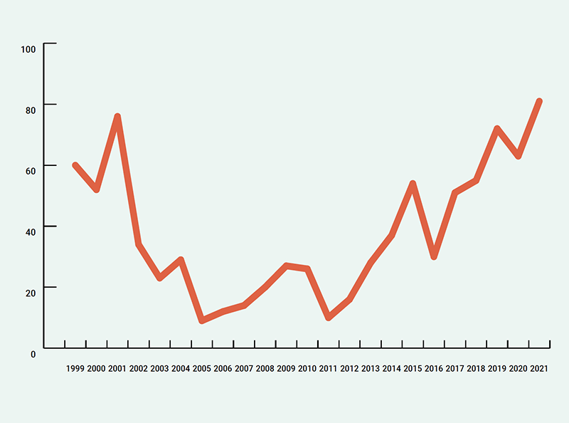 I 2001 ble rundt 2 400 saker behandlet av avvenningskommisjonene, men de var kun aktive i andre halvår. Fram til 2011 økte antallet sakte, og lå på mellom 6 000 og 7 000 tilfeller per år. Siden den gang har det vært en raskere økning og i 2017 var det i overkant av 12 200 saker. Etter det sank antallet saker igjen. I 2022 kom 94 prosent av sakene som ble henvist til avvenningskommisjonene fra politiet.